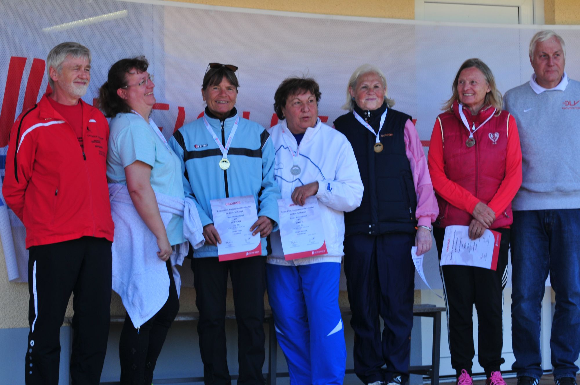 Bei den Frauen erzielte Teodora Albrecht von der Spvgg Satteldorf in der W 70 mit 3788 Punkte ein herausragendes Ergebnis, wobei sie vor allem in den Drehwürfen brillierte. Zweite wurde Margot Bernhard vom VfL Sindelfingen. Die deutsche Meisterin Claudia Vollert von der LG Radolfzell verbesserte ihre Punktzahl von den nationalen Titelkämpfen recht deutlich auf 3748 Zähler. Im Hammerwerfen hatte sie bei exakt 30 m besonderen Grund zur Freude. Zweite wurde Lisbeth Greiner von der TG Nürtingen. In der W 45 war Ulrike Schiele von der Unterländer LG einzige Starterin und lieferte mit 2333 Punkten ein achtbares Ergebnis ab. Als Gaststarterin  sie wechselte von Sindelfingen in ihre neue Heimat zum TV St. Wendel  brachte es Sabine Grißmer auf 3141 Punkte.