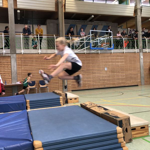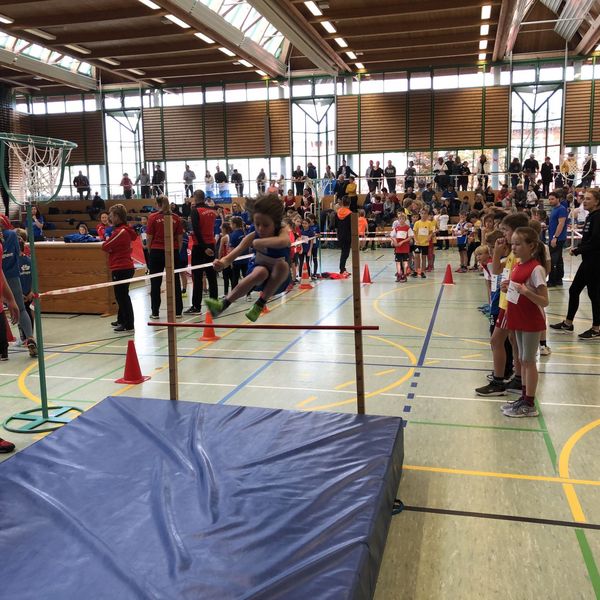 Der Hoch-Weitsprung war für viele Kinder eine herausfordernde Disziplin, denn es ging darum frontal über die rote Querstange zu springen. Jeder bekam zwei Versuche die Höhe zu überspringen und es musste dabei beidbeinig gelandet werden. Die Sprunghöhe wurde immer um 10 Zentimeter angehoben. Beeindruckende Sprünge über einen Meter oder sogar höher wurden dabei besonders laut beklatscht. Die besten Springer waren wieder die Ulmer Kids - nur knapp dahinter die Mannschaft des TV 05 Fridingen.
