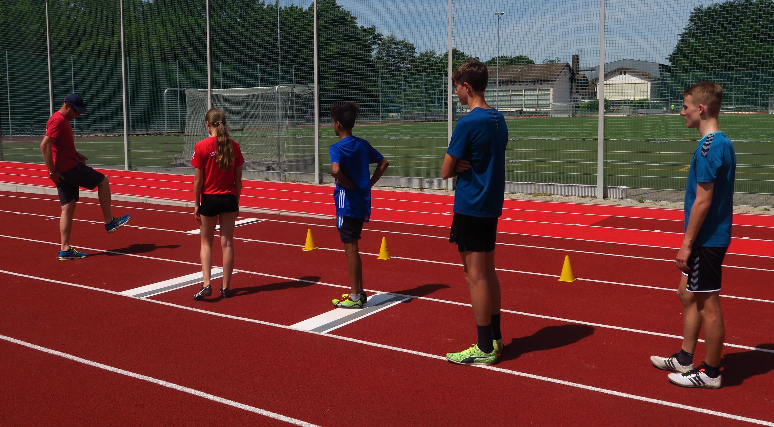 Insbesondere am Mittwoch mit 17 Athleten des Jahrgangs 2007 war in jeder Ecke des Sportgeländes etwas los. Hier Hochsprung mit Landestrainerin Jennifer Hartmann, da Stabitraining und Tempoläufe mit Lauf-Landestrainer Christoph Thürkow oder Hürden- und Sprungtraining mit den Landestrainern Christoph Geissler und Volker Zahn. Beim Dienstagslehrgang mit den mehrkampf- und wurforientierten Kadern gab Wurf-Landestrainerin Carolin Streipart ihr Wissen weiter.