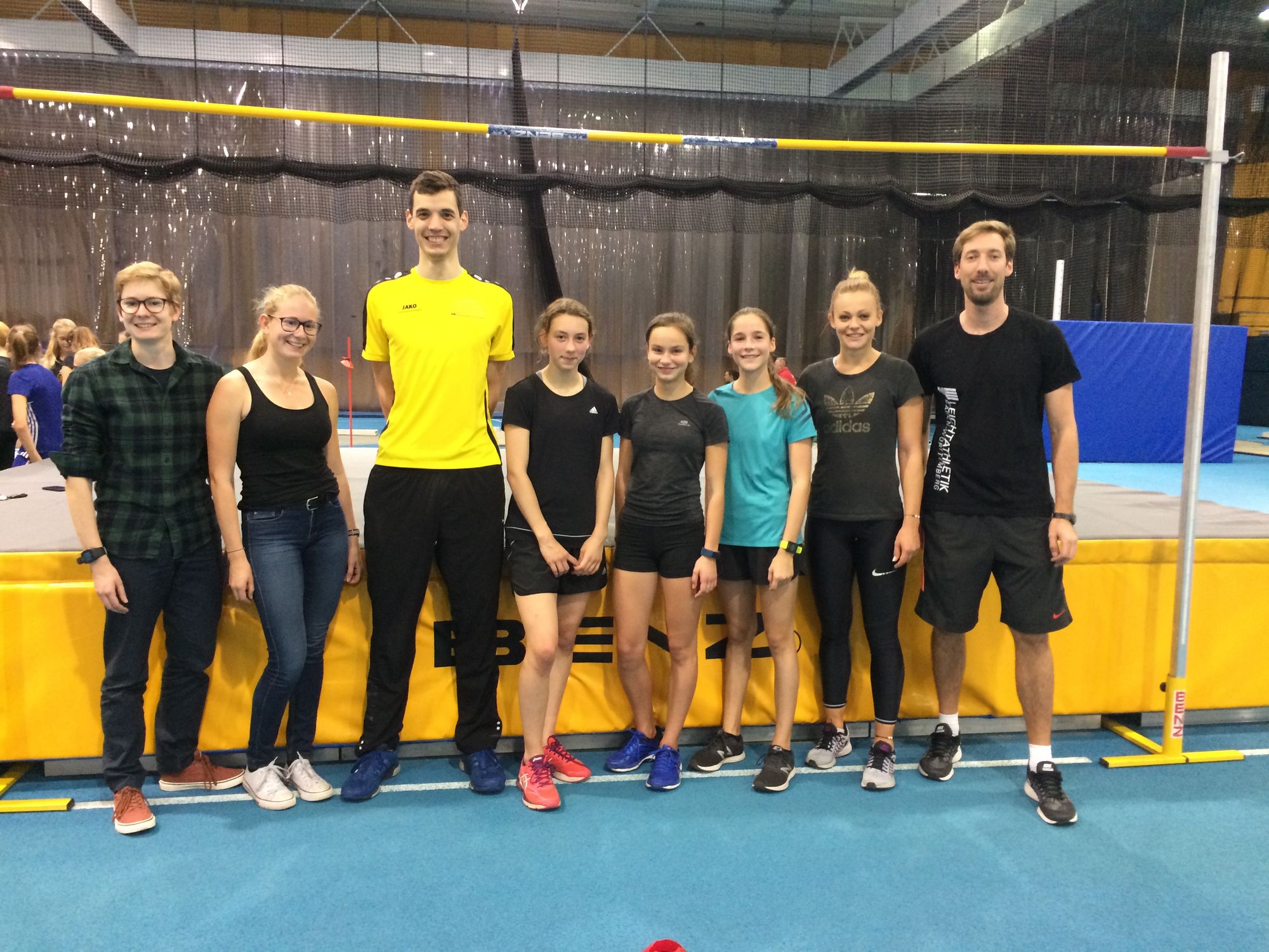 Das Siegerteam des Team Hoch-Sprungcups vom 5. Mai 2018 in Winnenden Lena Schuster, Emma Hetzinger und Marie Klinsmann vom VfL Winterbach schnupperten zusammen mit ihren Trainerinnen Saskia und Svenja Faust im Training von Hochspringerin Anne Klebsch (LAZ Ludwigsburg, 7. der U23 Europameisterschaft 2017 in Polen; PB: 1,86 m) und Hochspringer David Nopper (Spitzensportgruppe der Landespolizei Baden-Württemberg, LAZ Ludwigsburg, Deutscher Meister Hochsprung 2015, PB: 2,25 m) vorbei. Im Anschluss trainierten die drei Mädels unter der Leitung von Landestrainer Steffen Hertel an der Hochsprunganlage und arbeiteten an der perfekten Hochsprungtechnik.