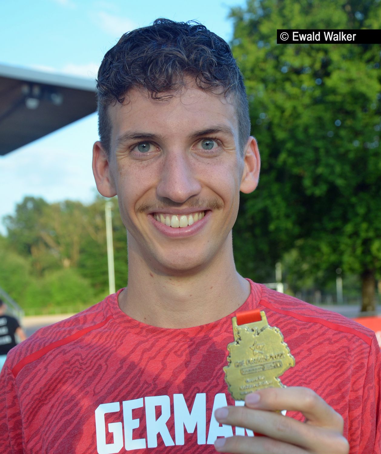 Erst zwei Meter vor der Ziellinie reißt Holzapfel die Arme hoch. „Deutscher Meister, das ist alles surreal, das passt noch immer nicht in meine reale Welt“, sagt er noch Tage später bei der Meisterschaftsfeier im Pliezhäuser Schönbuchstadion. Seine komplette Trainingsgruppe vom LV Pliezhausen ist da, 16 Leute. „Ein Toast auf den Sensationssieger“ heißt es da. „Tim, du bist eine Riesenbereicherung für unsere Gruppe,“ sagt Trainer Thomas Jeggle. Und Holzapfel selber retouniert, mit dem Sektglas und der Goldmedaille in der Hand: „Ich danke euch für den tollen Rückhalt“.